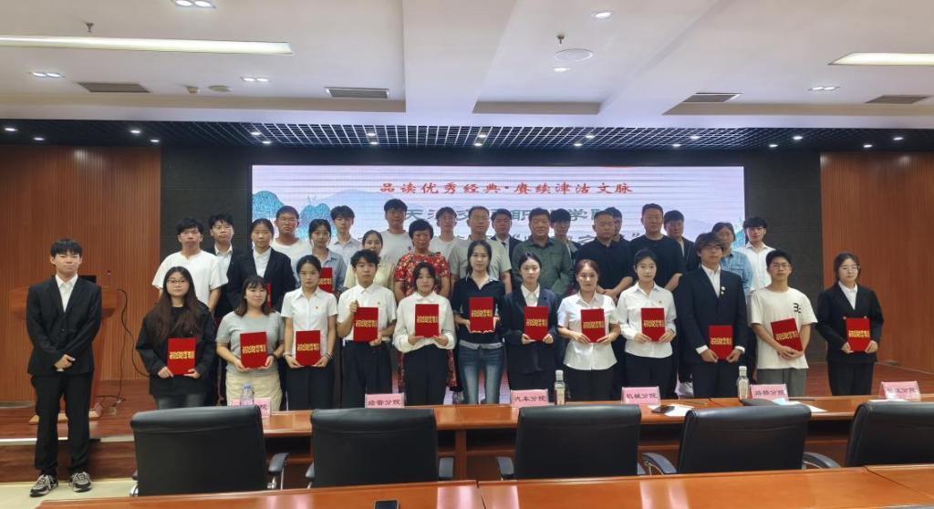 为深入学习贯彻习近平文化思想,落实习近平总书记视察天津重要讲话精神,弘扬中华传统文化、赓续津沽文脉,天津交通职业学院图书馆与院团委联合主办的“品读优秀经典·赓续津沽文脉”2025书香天津·校园大学生“悦读之星”校内选拔赛,已顺利完成全部赛程。活动在图书馆B座8楼报告厅开展,出席本次活动的有学工部、各分院、图书馆的老师以及来自各分院的学生代表。