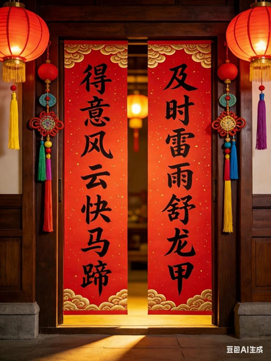 及时雷雨舒龙甲;得意风云快马蹄。 ——选自清光绪十三年(1887)刻本《新纂对联集成》